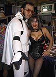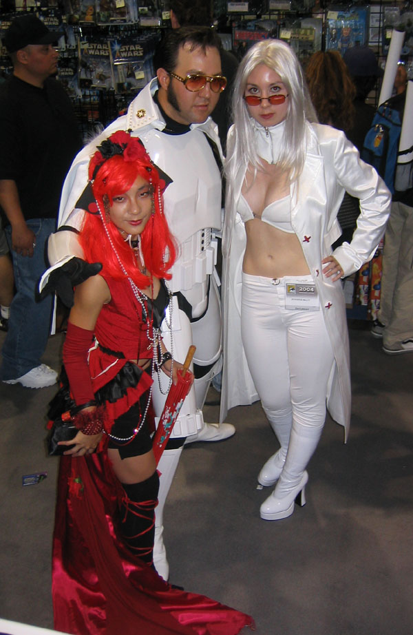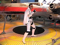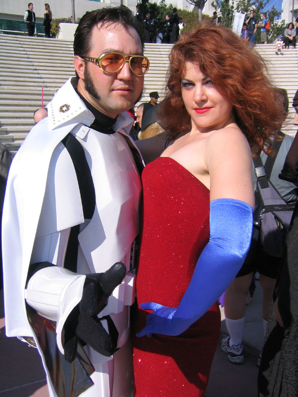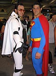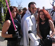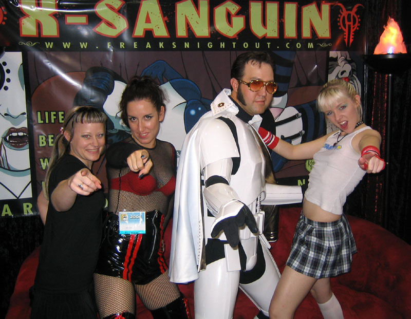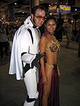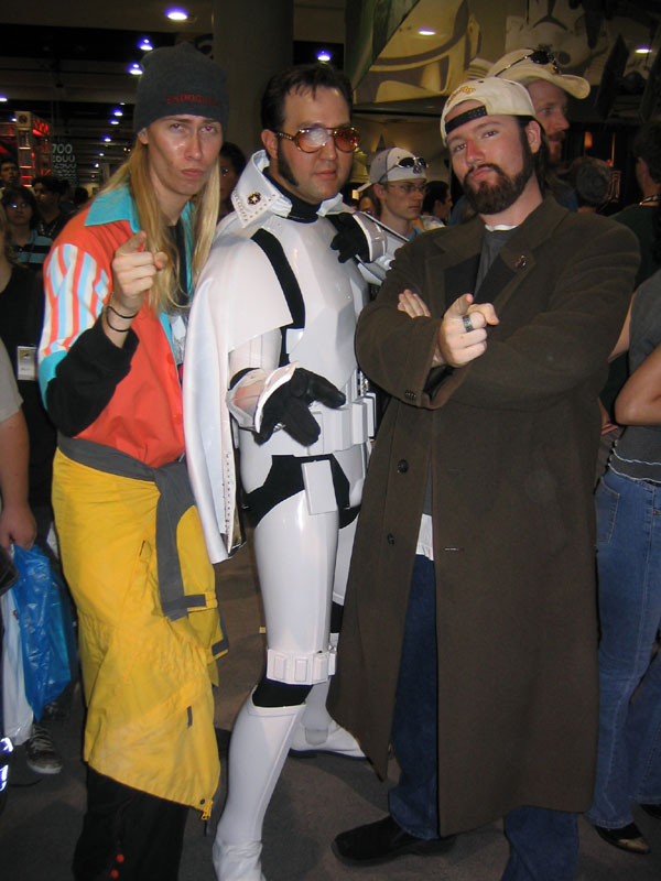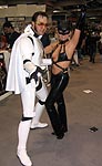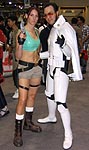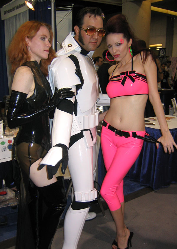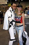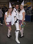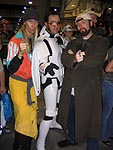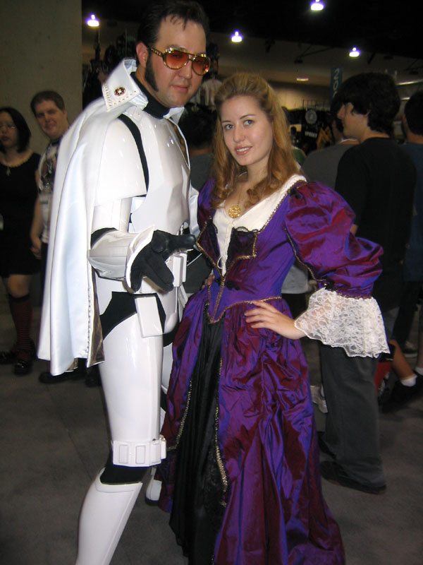 Yes, the rumors are true and your eyes aren't deceiving you, it's an all new Elvis Trooper for '04! Once again we find our hero at his favorite Con, the San Diego Comic Con 2004. How can it be, but this year the Con was bigger than ever which means more and more fans for him to meet, greet, and take pictures with. And a few lucky people even walked away with their very own Elvis Trooper T-shirt as a souvenir of the time they spent with the him, hey what a nice guy this Elvis Trooper must be. I wonder if any of the girls did anything special to get a T-shirt, well it's probably best not to even ask such questions that could only lead to trouble. Now onto a few of the more respectable pictures that we were able to find of the Elvis Trooper at San Diego Comic Con 2004. |